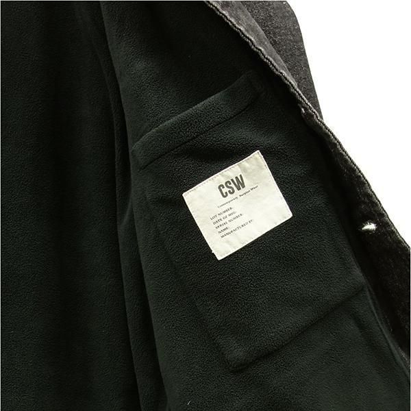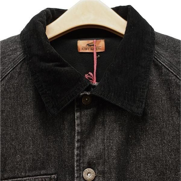 襟部分をコーデュロイ素材で切り替えて季節感を表現しています。