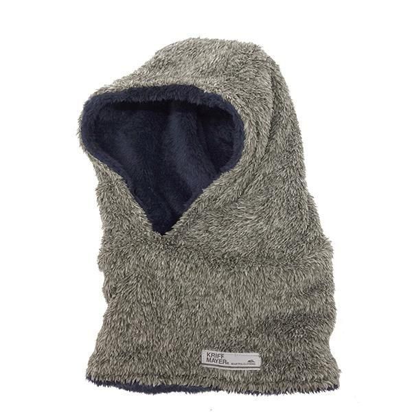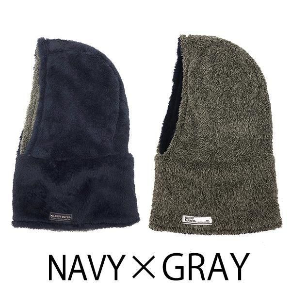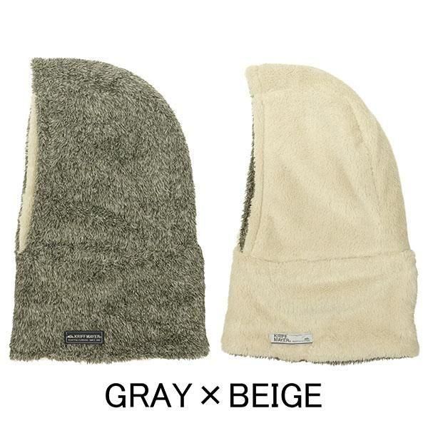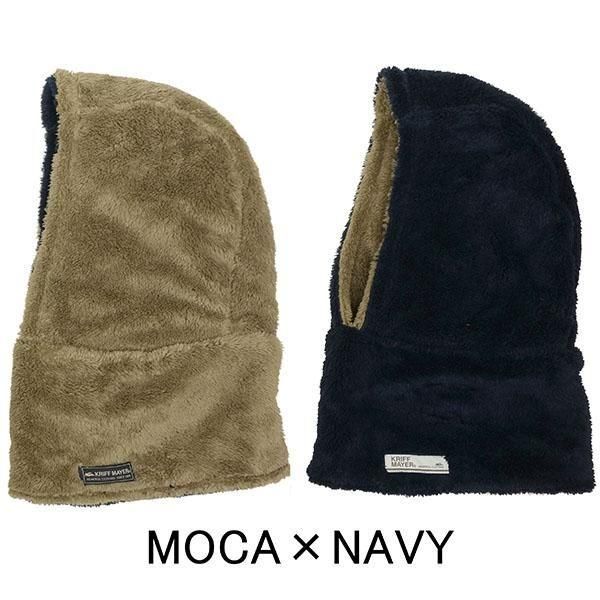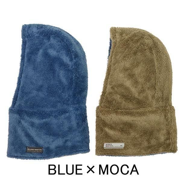 毛足の長いボアフリースのリバーシブルー仕様のバラクラバです。