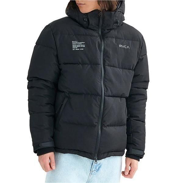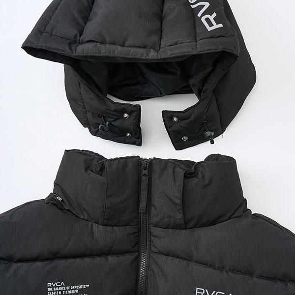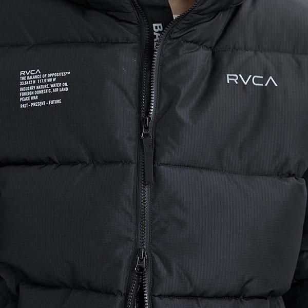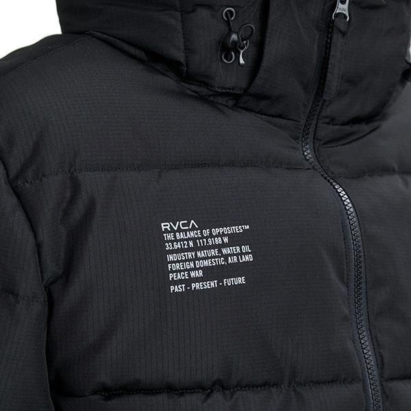 バックとフードにはアイコニックなRVCAロゴのプリントを配置。